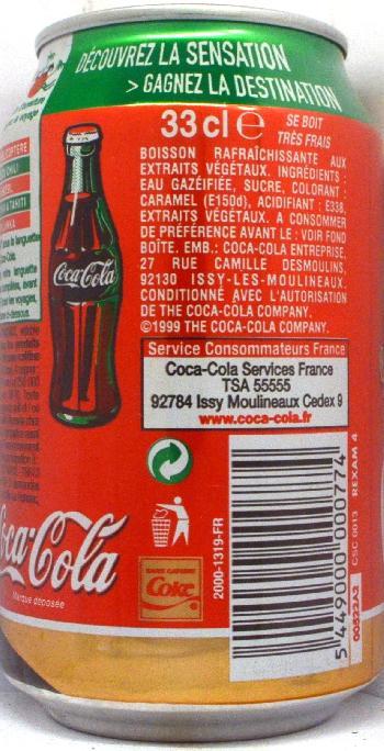 COCA-COLA-Cola caffeine free-330mL-DESTINATIONS TOUTES -France-2000