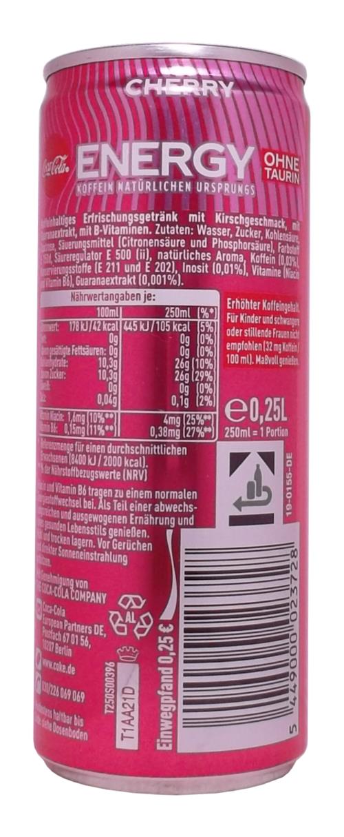 COCA-COLA ENERGY CHERRY KOFFEINHALTIGES ERFRISCHUNGSGETRÄNK MIT KIRSCHGESCHMACK, MIT GUARANAEXTRAKT, MIT B-VITAMINEN