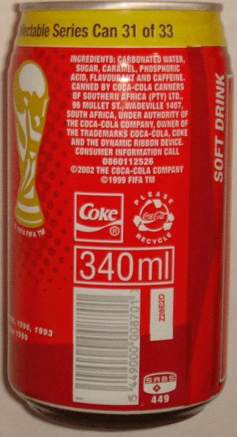 COCA-COLA-Cola-340mL-FIFA WORLD CUP 2002:-South Africa-2002