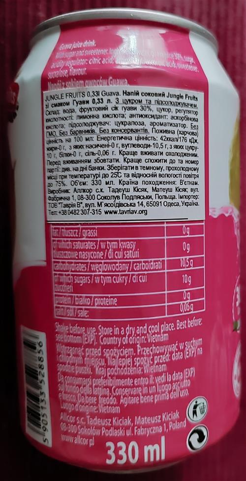 JUNGLE FRUITS-Guava drink-330mL-Poland-2024