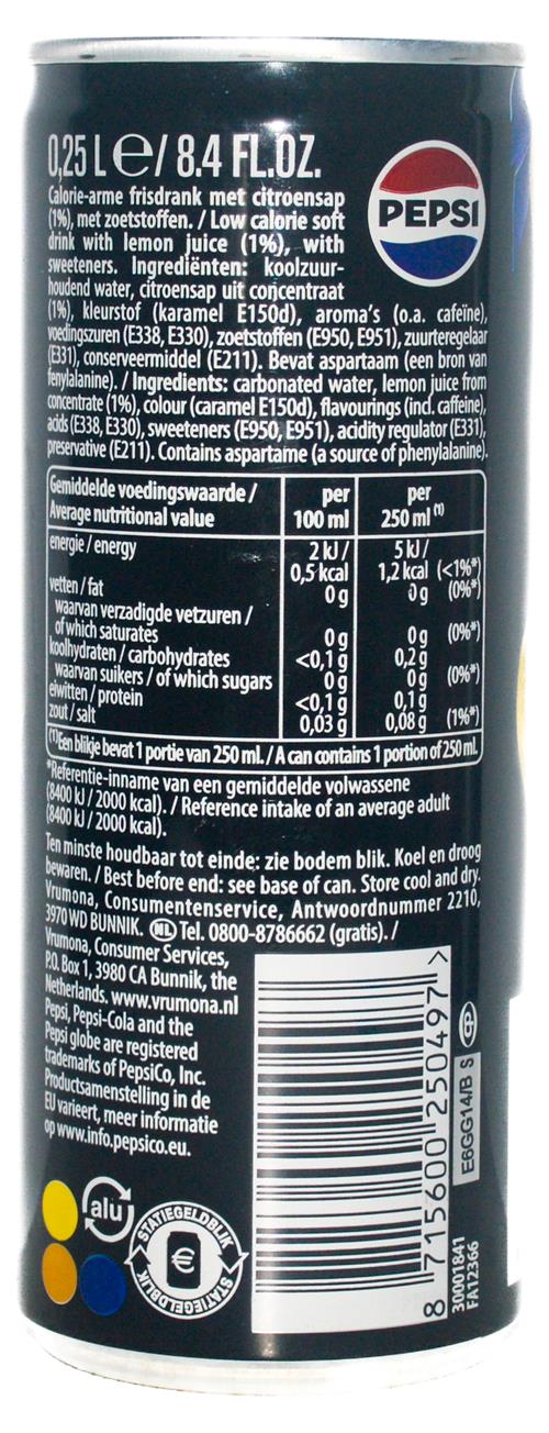 PEPSI-Cola with lemon (diet)-250mL-(STATIEGELDBLIK LOGO-Netherlands-2025