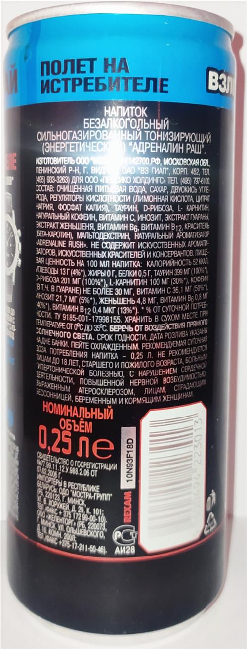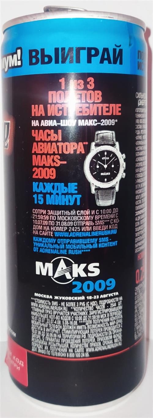 ADRENALINE RUSH-Energy drink -citrus-250mL-MAKS AIR SHOW "CHARG-Russian Federation-2009