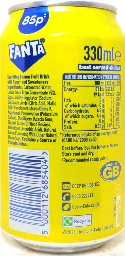 FANTA-Lemon soda-330mL-Great Britain-2025