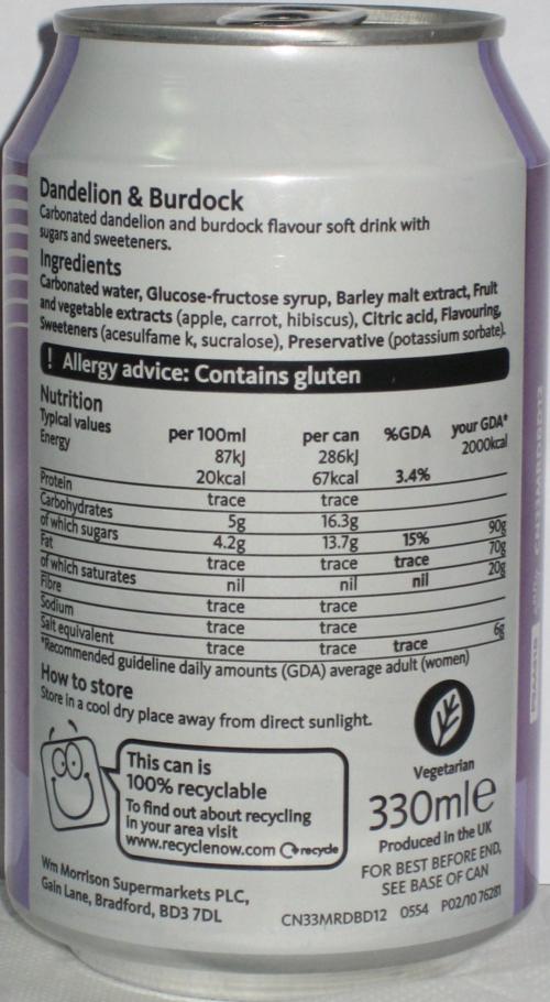 MORRISONS-Dandelion & burdock-330mL-Great Britain-2012
