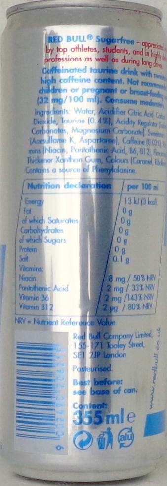 RED BULL-Energy drink (diet)-355mL-Great Britain-2016