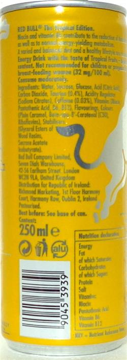 Variation Can: RED BULL-Energy drink -tropical-250mL-Great Britain-2024